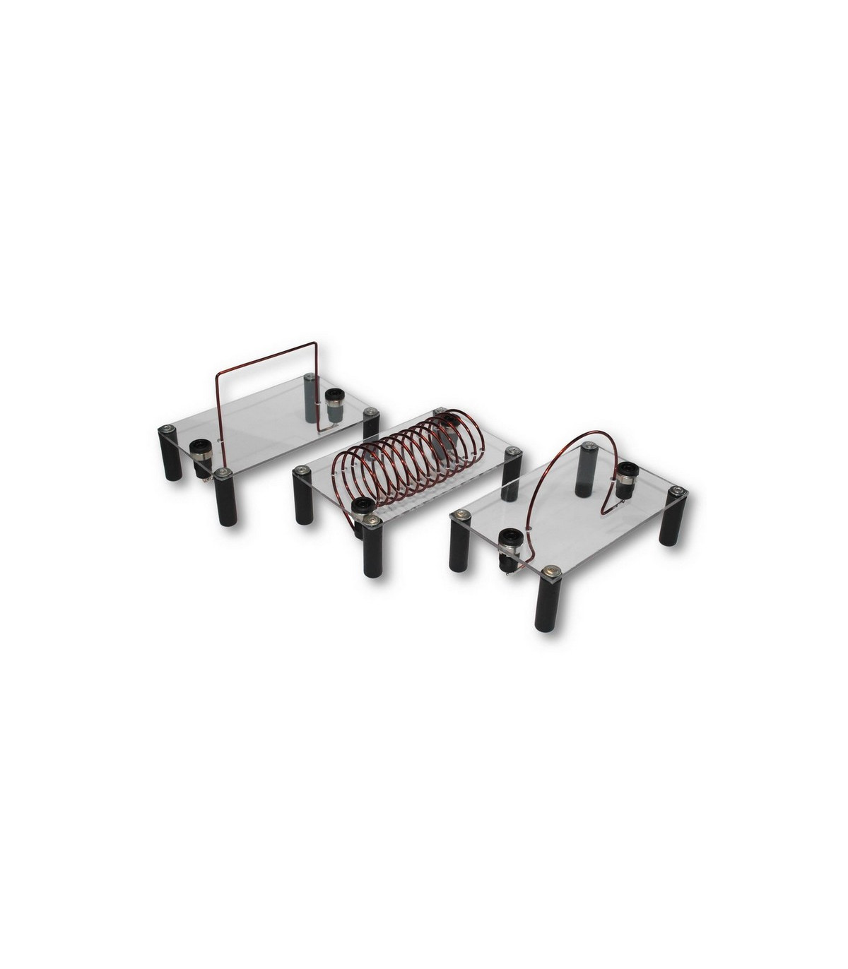 Kit para el estudio de Inducción magnética y trayectoria de las líneas de fuerza del campo magnético de un conductor recto, de una bobina cilíndrica y una espiral.